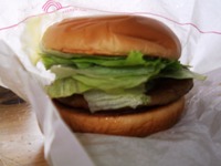 辛テリーヤキバーガー 土曜日の朝10時、近くのモスバーガーへ。 開店と同時に入ったが、すでに10人くらいが並んでいた。 そして、ちょうど前の人で「激辛テリーヤキ」は売切れに。 「辛テリーヤキ」を2つ買った。 嫁さんに頼まれ、ワケも分からず買いに出かけたのだが、 「スッキリ!」というテレビ番組とモスバーガーがコラボ。 テリー伊藤がプロデュースしたハンバーガーらしい。 食べてみて。。。ちょっと辛いテリヤキバーガー。 嫁さんの感想は、この3倍くらい長かった^^ 商品化される前から番組を見ていたファン心理か。