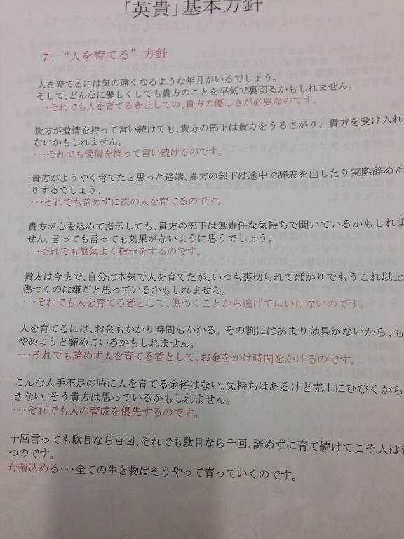 新入社員に対する「お母さんからの手紙」は有名。