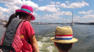 子どもと一緒に乗せてもらった船は、古野電気さん所有の大型クルーザー。